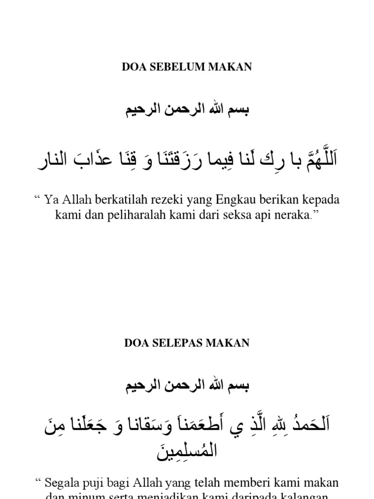 Doa sebelum dan selepas makan. Sebelum dan selepas membuang air. Doa sebelum makan dan doa selepas makan(set) saiz : Doa sebelum makan dan selepas makan. English translation of lyrics for doa makan by raihan.