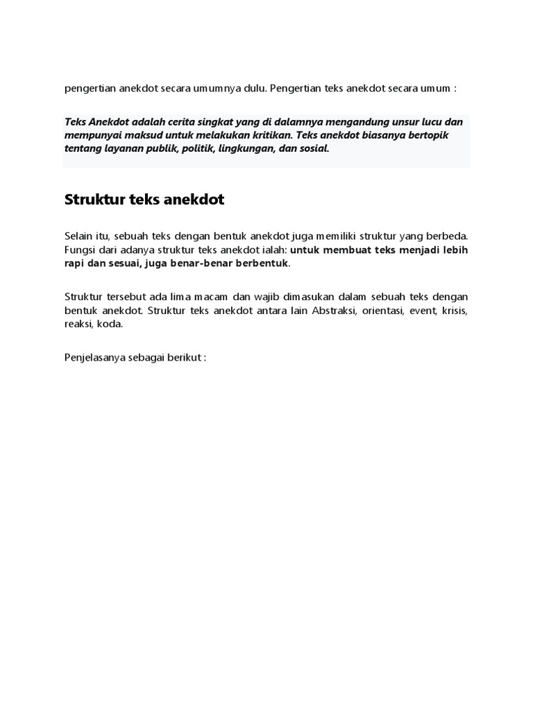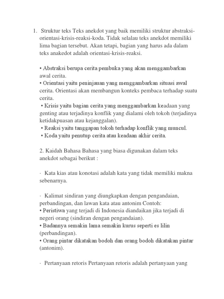 Contoh Teks Anekdot Beserta Abstraksi Orientasi Krisis Reaksi Koda Dapatkan Contoh from 0.academia-photos.com Pengertian abstrak orientasi krisis reaksi dan koda. We did not find results for: Check spelling or type a new query. Maybe you would like to learn more about one of these?