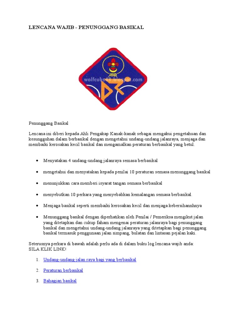 Pengakap Kanak Kanak Ujian Lencana Wajib Penunggang Basikal Part 2 Youtube from i.ytimg.com Dan dia membawa banyak kebaikan. Adakah anda ingin belajar menunggang motosikal atau basikal? Jangan berbual & merokok ketika menunggang basikal. Ketahui sejauh mana anak umur sedia untuk langkah dan jenis motosikal dan kaedah latihan yang mereka perlukan. Selain itu, beliau berkata, miros turut bekerjasama dengan institusi dalam dan. · jangan bersaing atau berlumba semasa menunggang basikal. Berbasikal adalah satu latihan yang hebat yang dapat memberikan manfaat untuk sistem pernafasan dan kardiovaskular anda dan juga membakar sehingga 500 kalori sejam. Sebelum menunggang basikal, pastikan brek, lampu hadapan, lampu merah.
