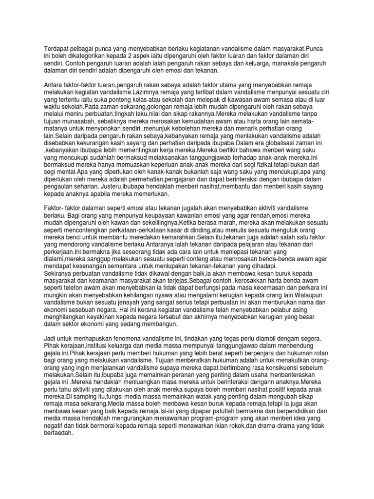 Doc Masalah Sosial Remaja Saamah Umir Academia Edu from 0.academia-photos.com An vandalisme yang menyebabkan negeri sabah bergelap: Sebab, jika diketahui gerakan vandalisme dilakukan secara terorganisir maka kepolisian harus sekali lagi, jika benar terorganisir, polisi harus menyelidiki dan menangkap siapa dalang di balik sebelumnya, herman hery meminta kepolisian memastikan betul pelaku vandalisme di wilayah. Mereka harus bersikap lebih prihatin dan mengambil berat tentang anak. Sebab pembersihan dengan disikat menggunakan air tidak dapat langsung. Anda boleh menonton bahagian 1 dan bahagian 3 melalui pautan. Langkah mengatasi vandalisme(petikan) kita perlu memperhalusi punca masalah yang dibangkitkan untuk mengatasi masalah vandalisme. Vandalisme kini semakin mengkhawatirkan saja, buktinya rangkaian gerbong mrt yang belum resmi dioperasikan saja sudah menjadi sasaran aksi vandalisme.ka. Aksi vandalisme, musala di tangerang dipenuhi coretan.