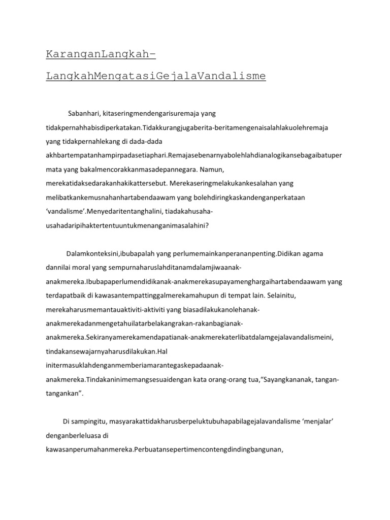 Mereka harus bersikap lebih prihatin dan mengambil berat tentang anak. Langkah mengatasi vandalisme(petikan) kita perlu memperhalusi punca masalah yang dibangkitkan untuk mengatasi masalah vandalisme. Ada ribuan vandalisme di candi borobudur. An vandalisme yang menyebabkan negeri sabah bergelap: 091 | no matrik :